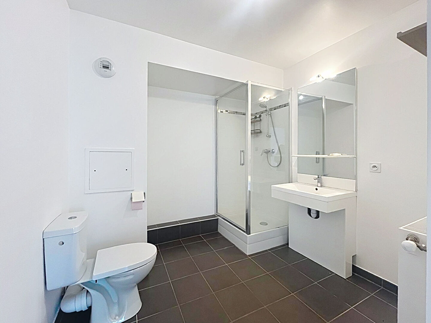 Côté nuit, vous trouverez une belle chambre de plus de 13 m² avec placards intégrés et une salle d'eau avec WC, moderne et fonctionnelle.