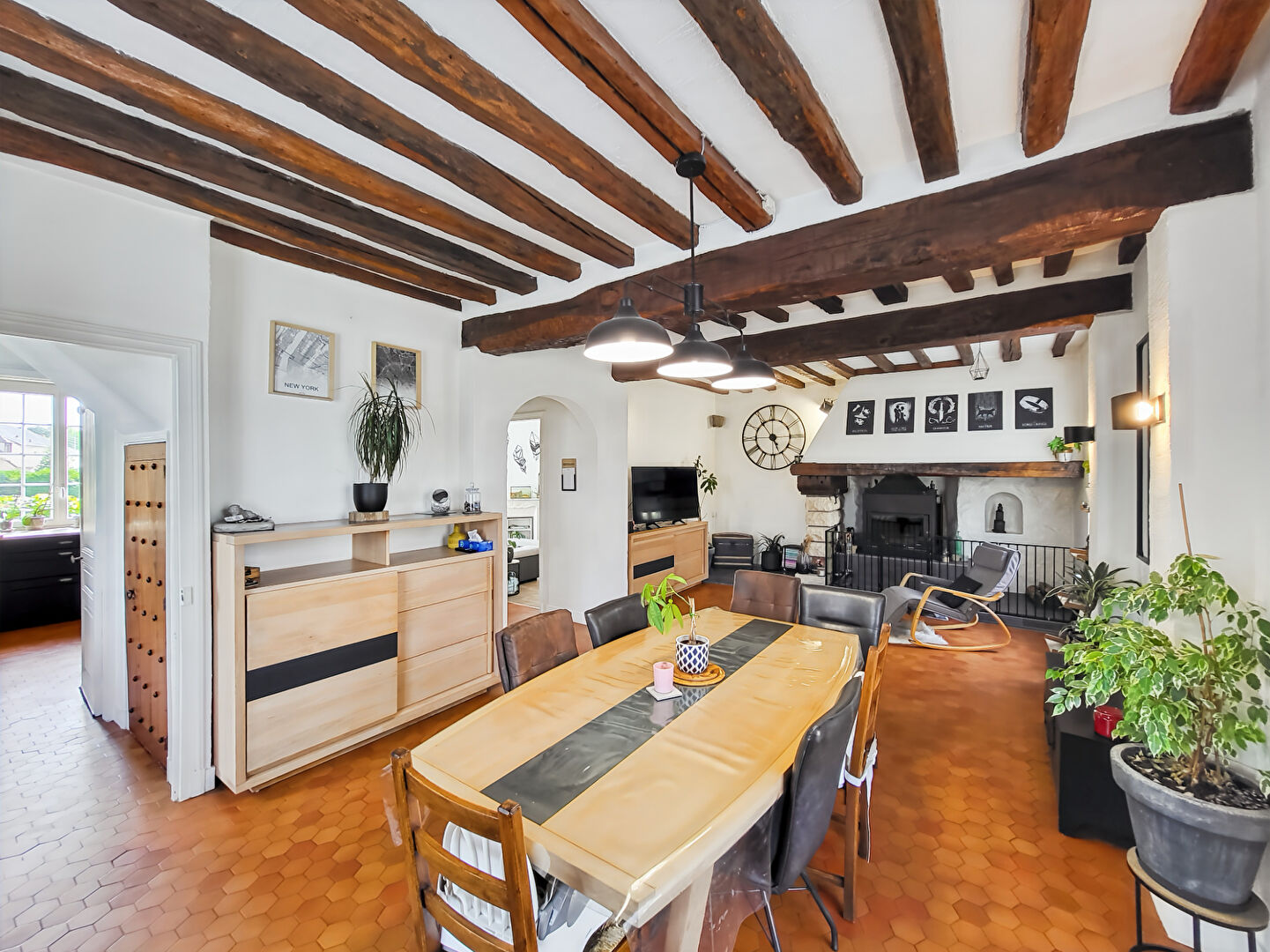 Située sur un terrain d'environ 850m², cette maison familiale aura tout pour vous plaire avec ses pierres, ses poutres apparentes et ses tomettes au sol, qui ajoutent un charme indéniable à votre futur foyer.
