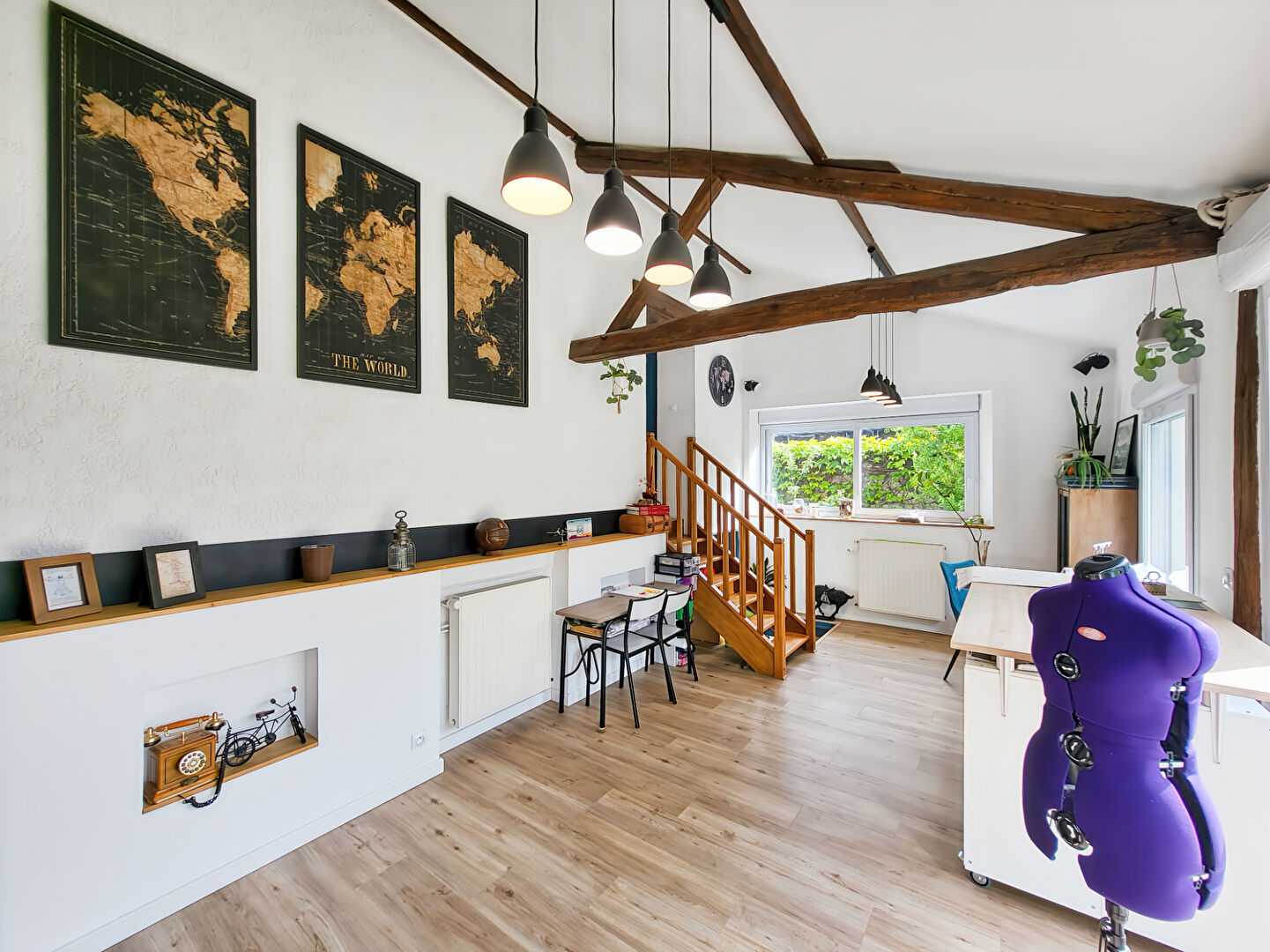 La belle cuisine indépendante, aménagée et équipée, est idéale pour les passionnés de gastronomie. Profitez également d'un salon-séjour lumineux, agrémenté d'une cheminée avec insert pour des soirées chaleureuses.