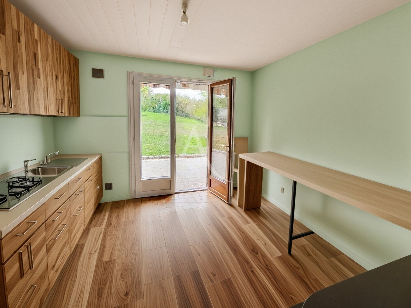 Cette propriété de 83m² se compose d'une entrée, d'un salon-séjour d'environ 28m² à double expositions avec sa cheminée à insert pour des soirée cocooning et d'une cuisine indépendante meublée de 9m² pouvant être ouverte sur le séjour.