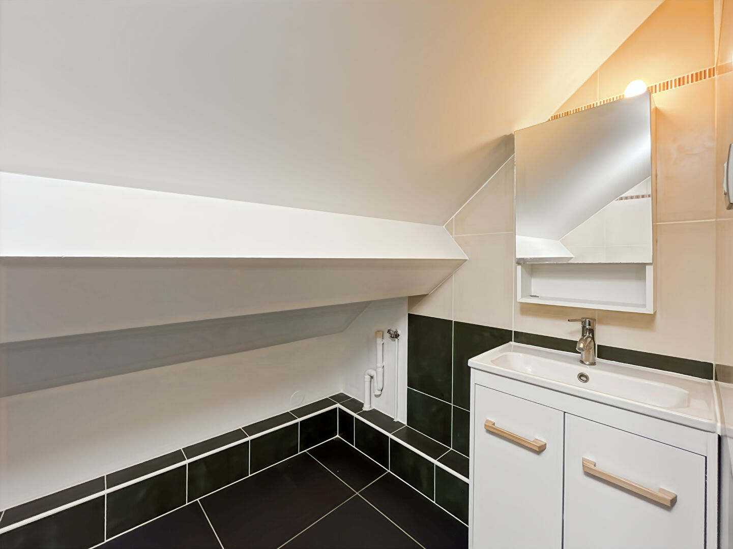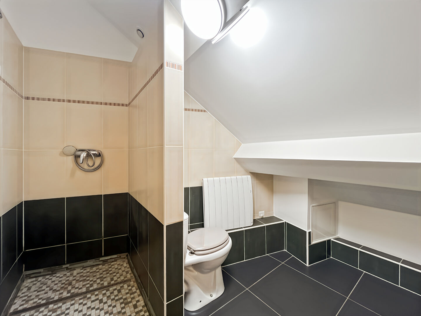 Ce niveau comprend également une belle chambre d'environ 13 m², une salle d'eau moderne et un WC .