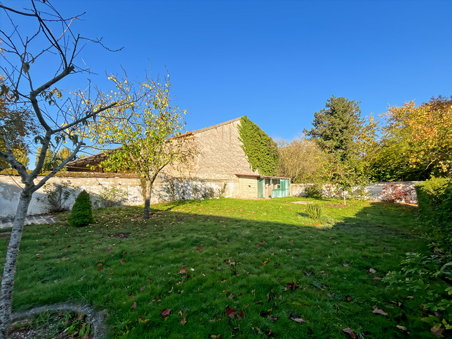 Entrée accueillante avec WC indépendant et accès direct à un terrain clôt privatif d'environ 420 m², idéal pour les repas en extérieur ou les moments de détente.