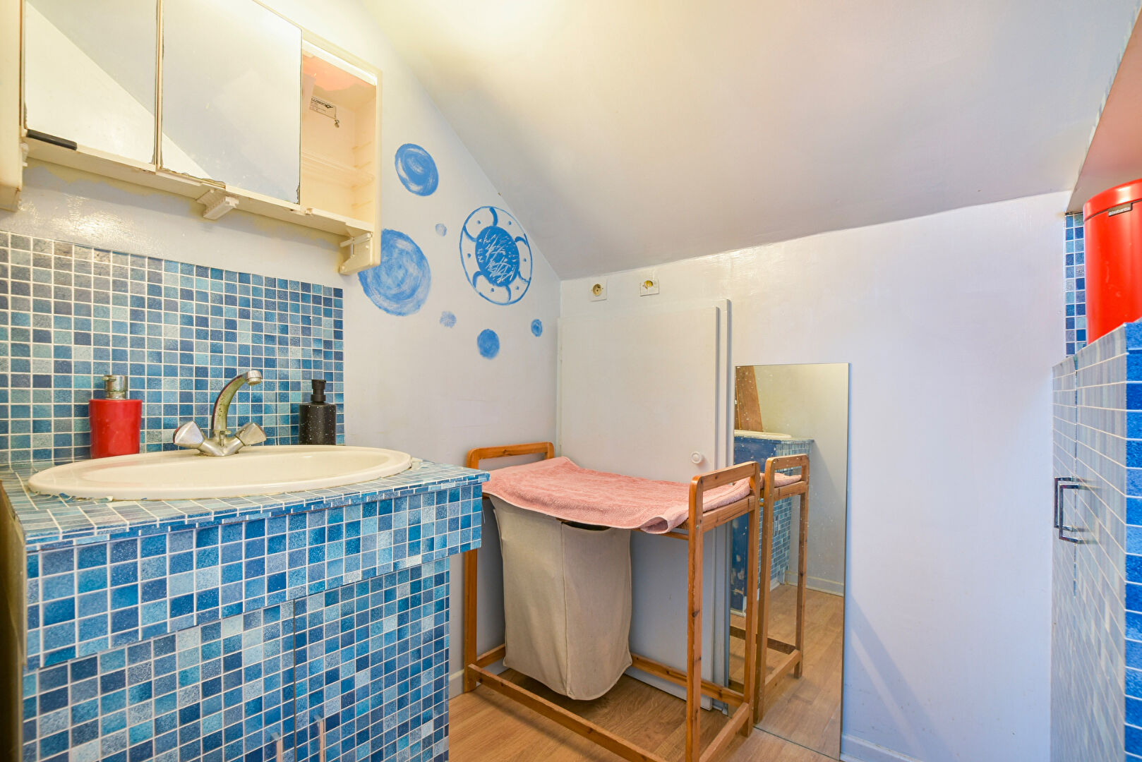 A l'étage, vous découvrirez un palier avec rangements, deux belles chambres avec placards dont une de 11m² ainsi qu'un point d'eau pouvant accueillir une douche.