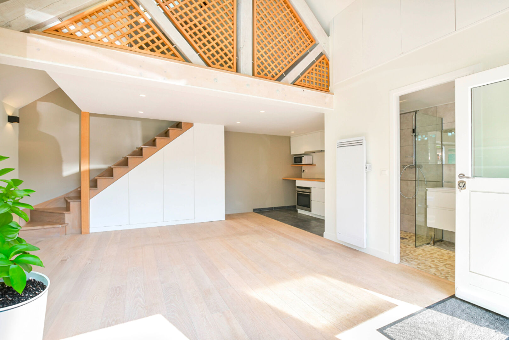 Le studio indépendant, parfait pour recevoir famille et amis, dispose d'un coin cuisine et d'une salle d'eau au rez-de-chaussée, ainsi qu'un espace nuit cosy à l'étage.