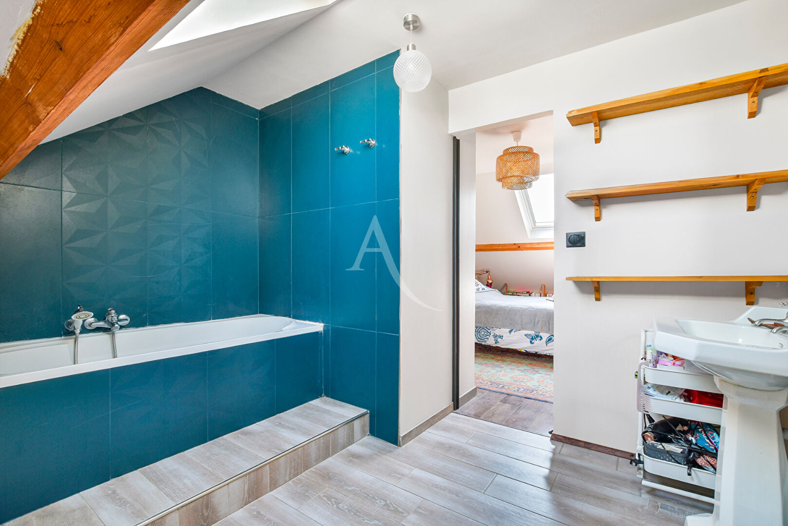 A l'étage, un palier et une partie aménagé en dressing pour satisfaire Madame, deux chambres spacieuses d'environ 13m² et une belle suite parentale accompagnée de sa salle de bains et son WC.