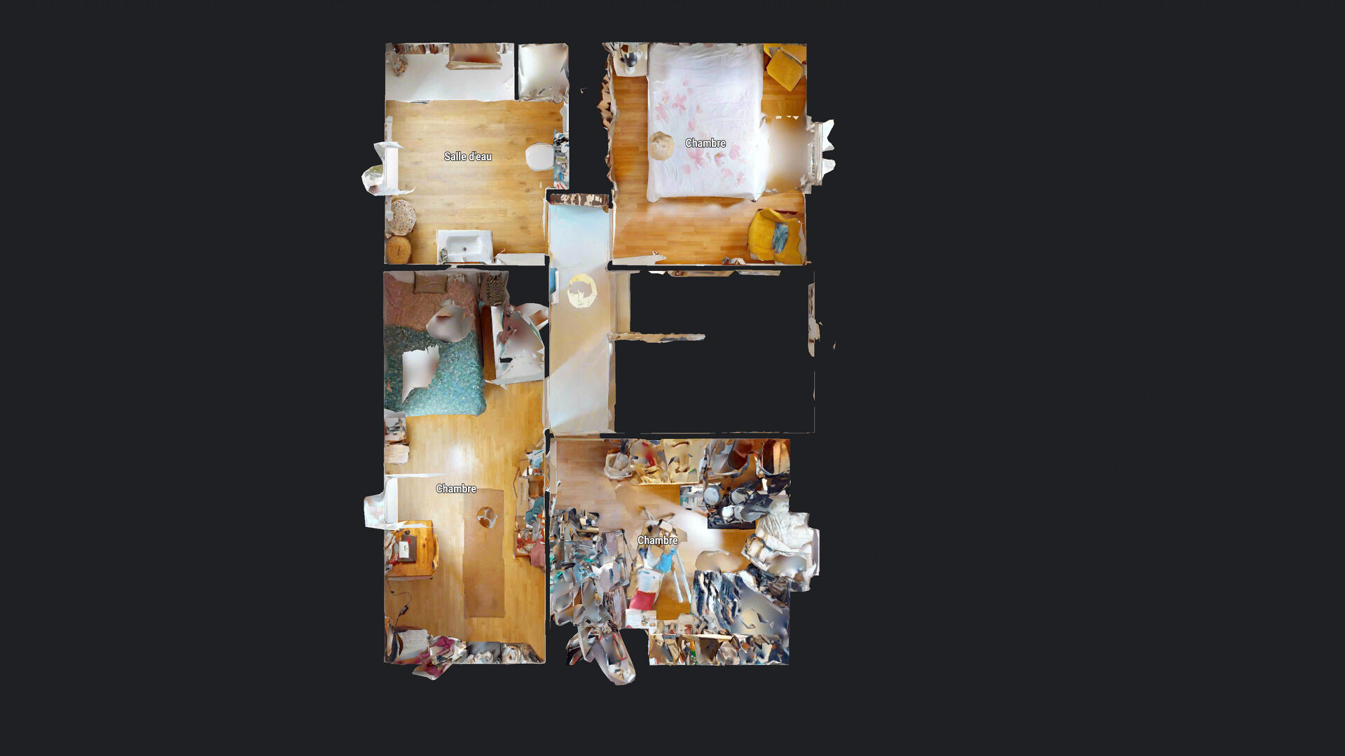 A l'étage, un palier qui desservira trois chambres avec rangement dont une de plus de 13m² au sol et une grande salle d'eau de plus de 5m² d'eau avec son WC.